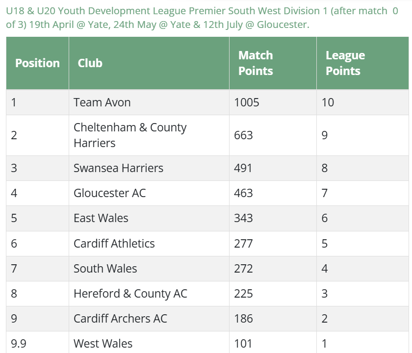 Sunday 19th April was the U18 & U20 Youth Development League Round 1 of 3 at Yate, It was fantastic to see such a large turnout from our junior with over 20 of them representing the club. The team put in a great result to place 3rd on the day and the highest placed Welsh team too! Thanks also to all our coaches, team managers and officials who made it such a successful day. Individual highlights included top 3 placings for: