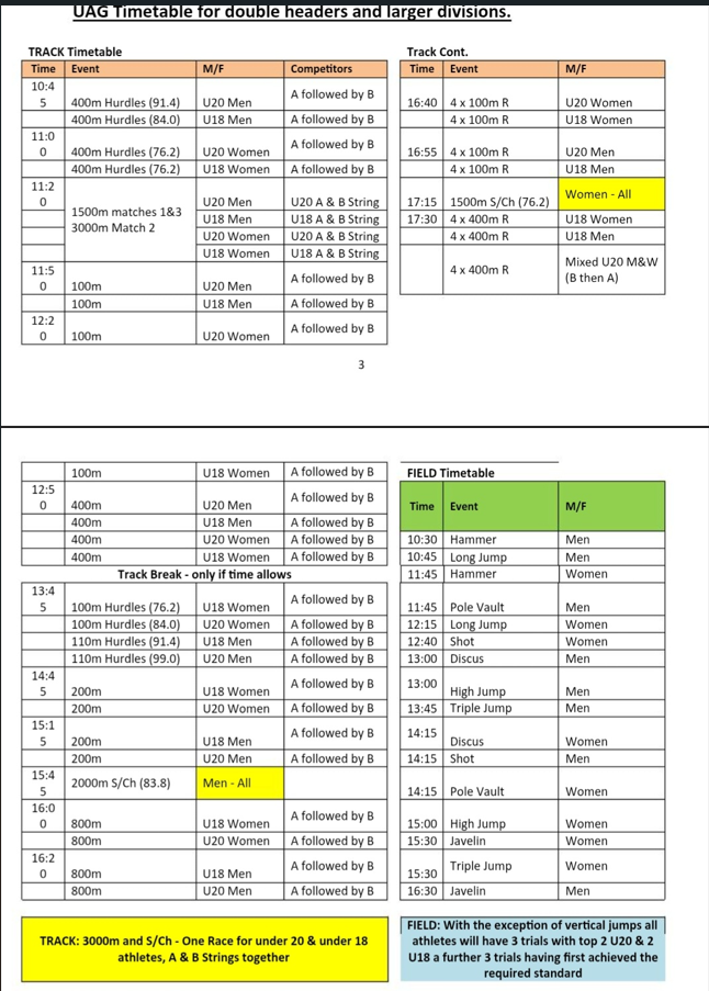 Sunday 19th April sees our U18 & U20 Youth Development League Team get the track and field season underway in round 1 of 3 at Yate, BS37 7LB. The very best of luck to the team where we are one of nine teams in the South West Division shown in the images below. A free team bus is provided for athletes and officials, to reserve your place and to sort out your events please contact your team managers: